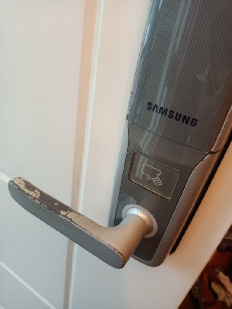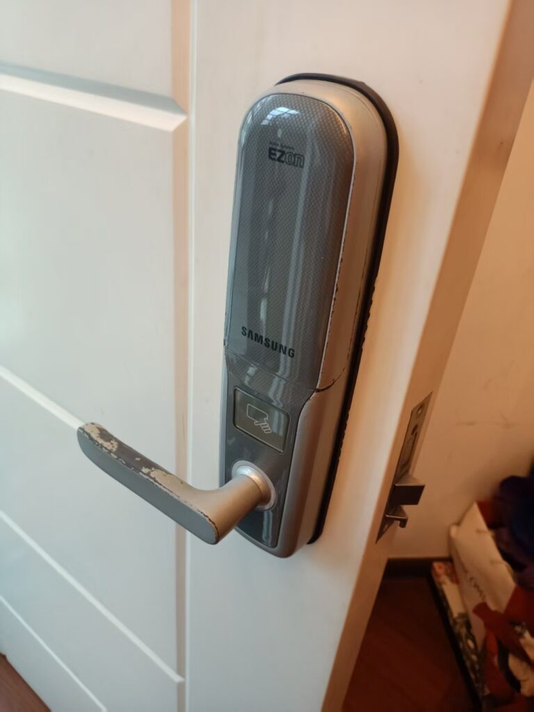 老舊三星鎖換上小米,三星已經不再經營,電子鎖,三星鎖問題是會鎖死在屋內,及早換了,是最佳選擇。