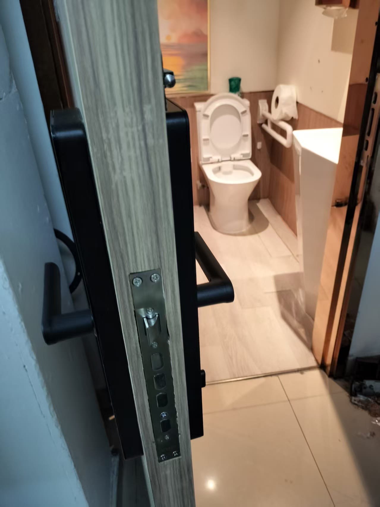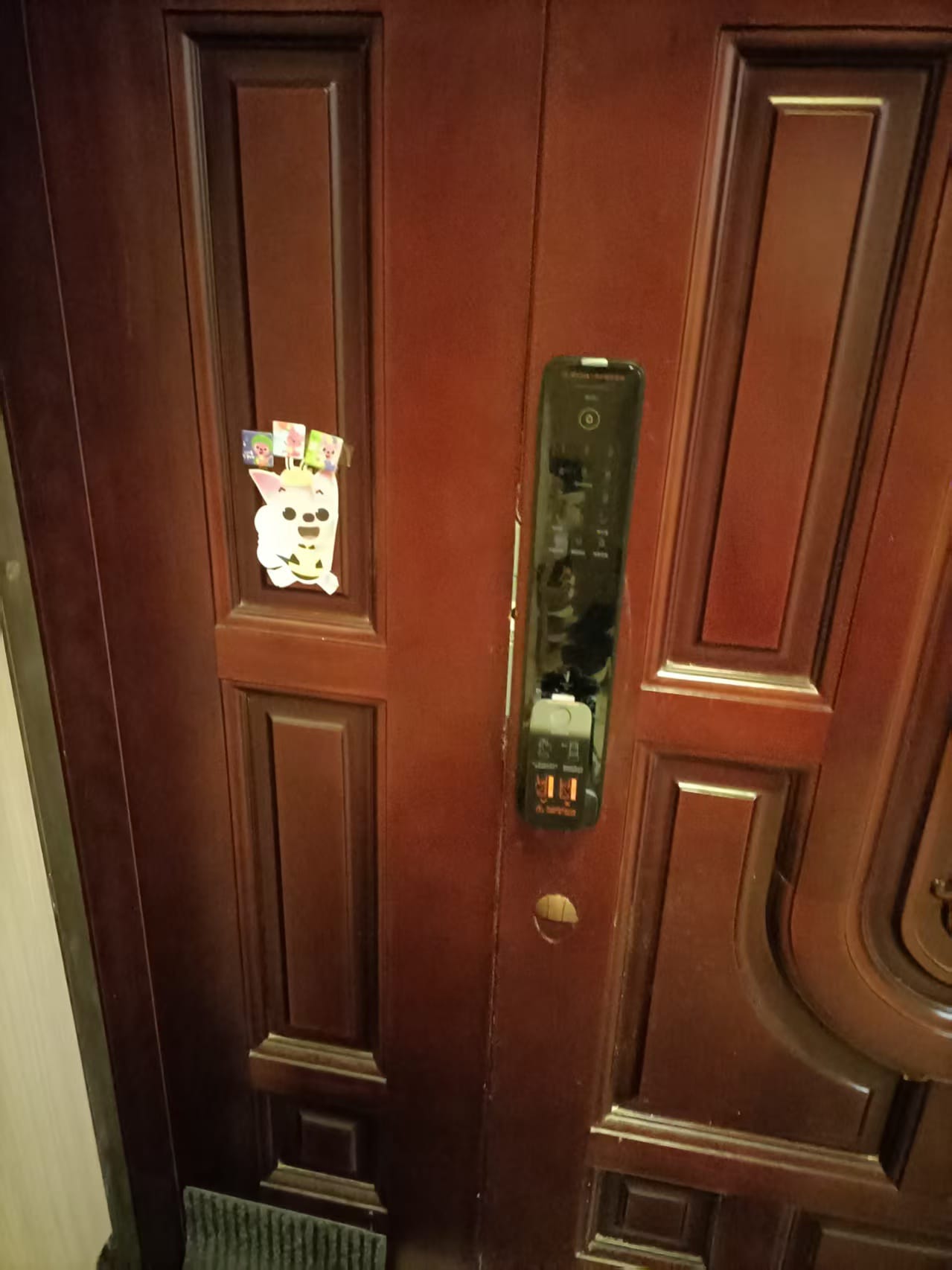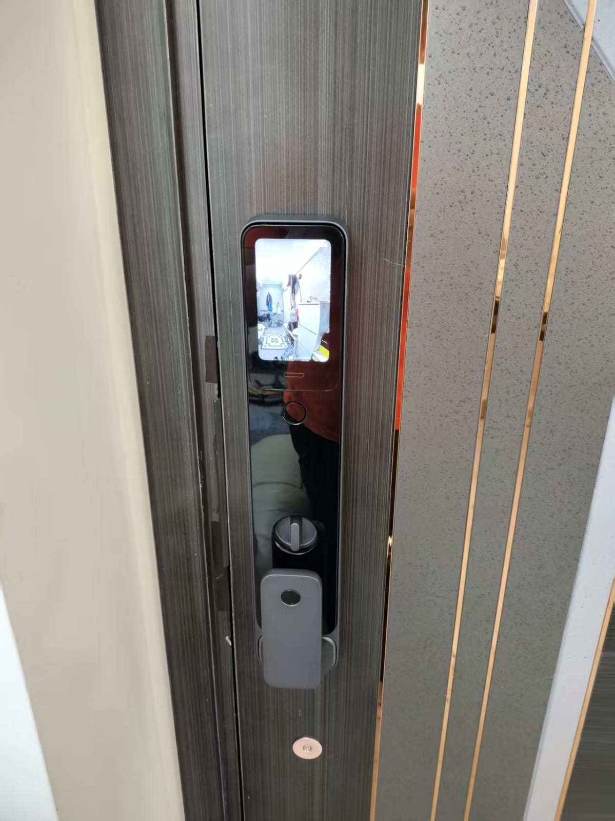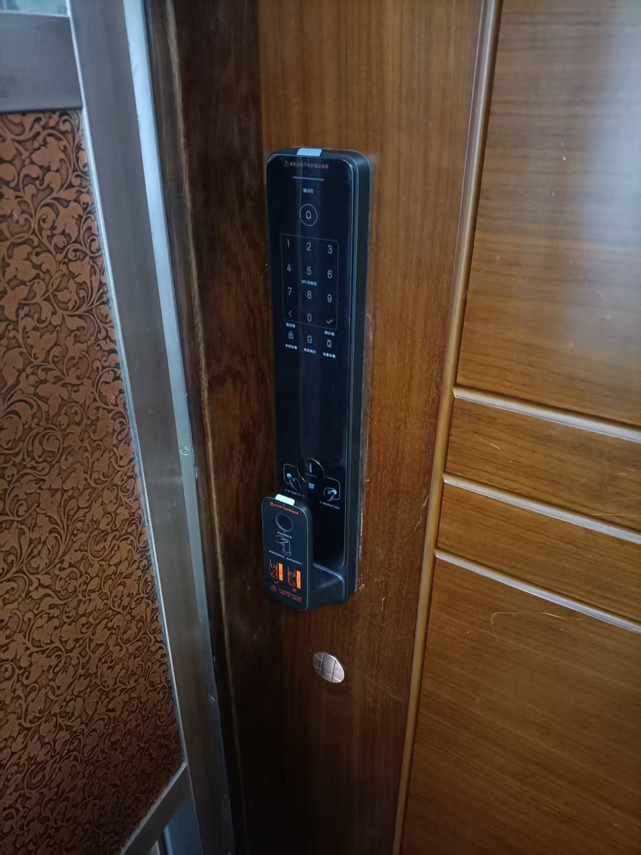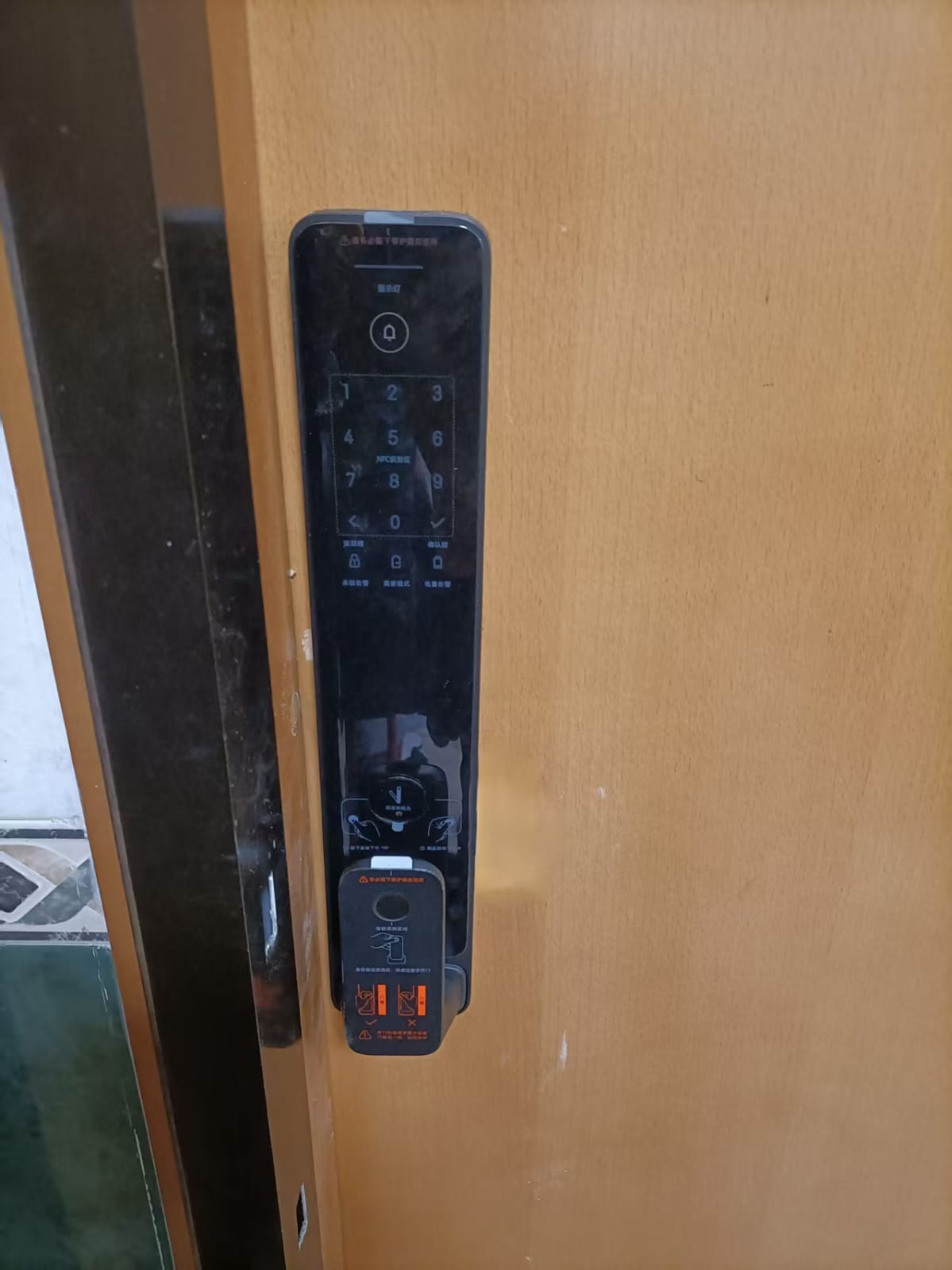 原鎖壞了,更換了多功能的門鎖,具有人面識別功能,並有屏幕可以看到門外場景。