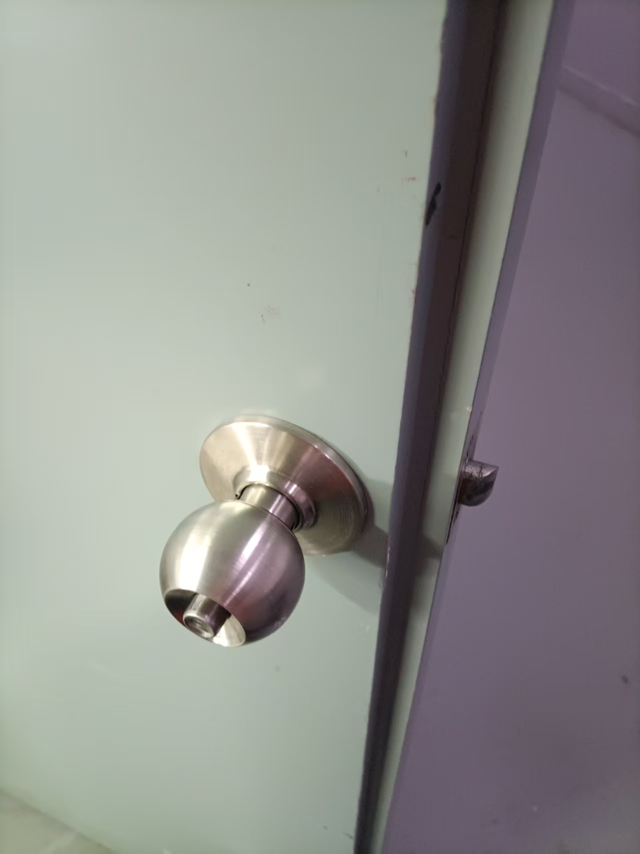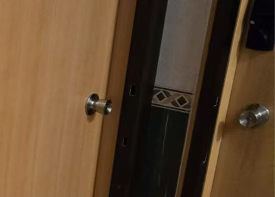 原鎖匙舊式的圓形鎖,且有點破爛,由於原鎖的槽較小,要先將門槽開大再安裝智能鎖。